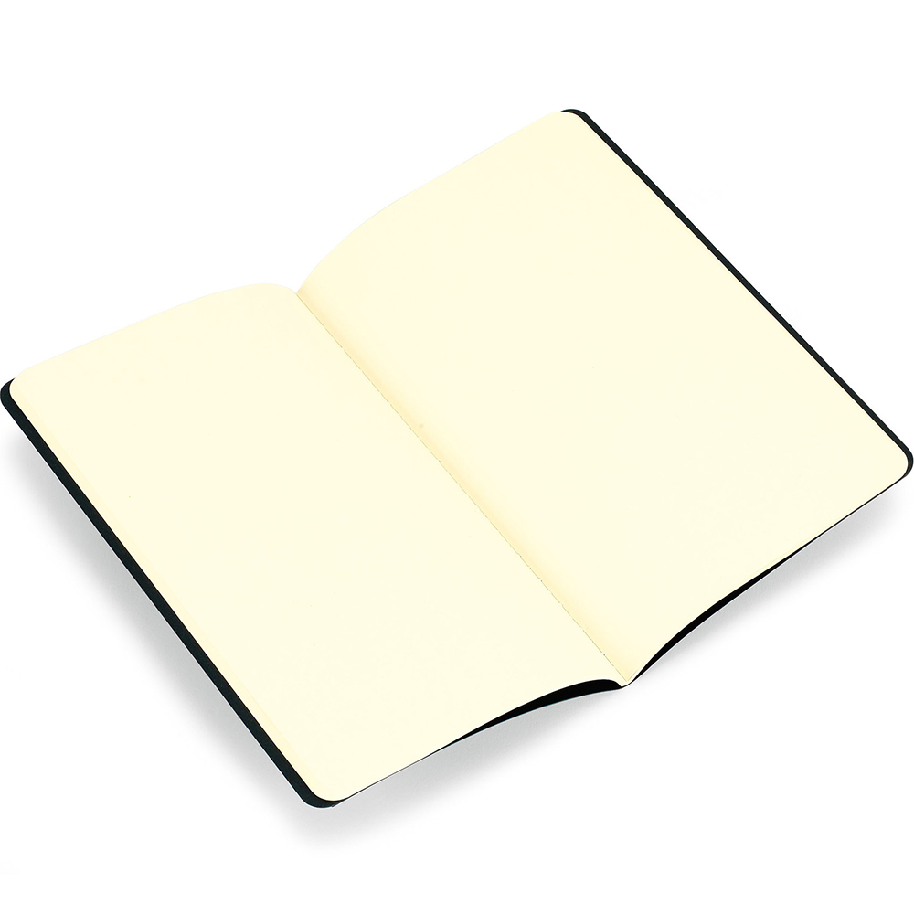 Perfect lightweight journal for day-to-day use with cardboard cover and visible stitching. Plain, acid-free paper. Last 16 sheets are perforated. Flap pocket on inside back cover. 80 pages (40 sheets). FSC Certified. Journals come packaged with a Moleskine branded ivory paper band and are individually shrink wrapped. Add a Custom Band (Item # 410), see link below! Price includes one color, one location imprint.