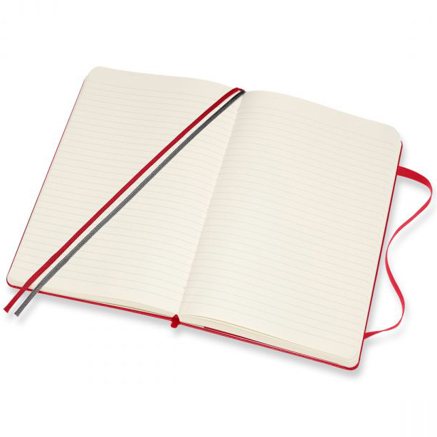 This expanded version of the Classic Notebook has 400 pages and 2 ribbon bookmarks to capture and keep track of more ideas than ever. Double ribbon bookmark. Ruled format. Expandable inner pocket. Ivory-colored 70 g/m² acid-free paper. 400 pages (200 sheets). Notebooks come packaged with a Moleskine branded paper band and are individually shrink wrapped. Add a Custom Band (Item # 505), see link below! Price includes one color, one location imprint.