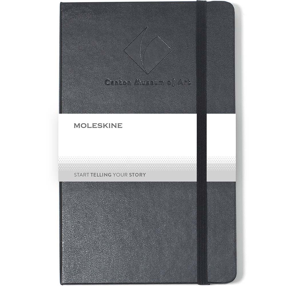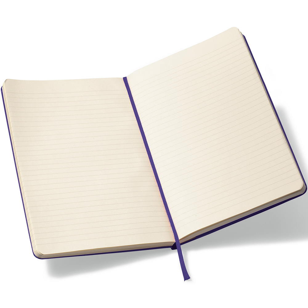 Reliable travel companion perfect for notes, sketches and thoughts. Bound hard cover with rounded corners, bookmark and elastic strap closure. Ruled format. Acid-free paper. Expandable inner pocket. 240 pages (120 sheets). FSC Certified. Notebooks come packaged with a Moleskine branded ivory paper band and are individually shrink wrapped. Price includes debossing.