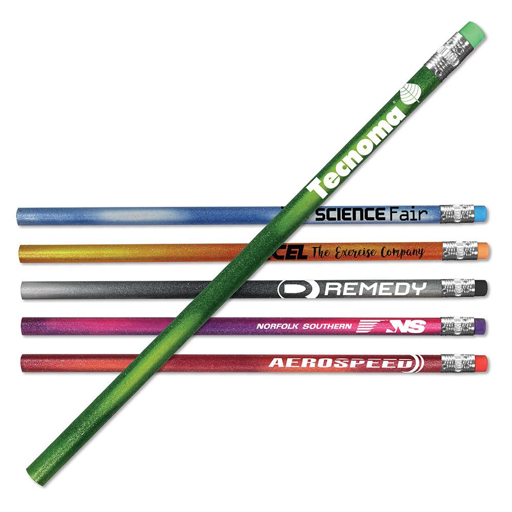Quality #2 wood pencil. Changes color with the heat of your hands. Sparkle coating. Price includes one color, one location imprint.