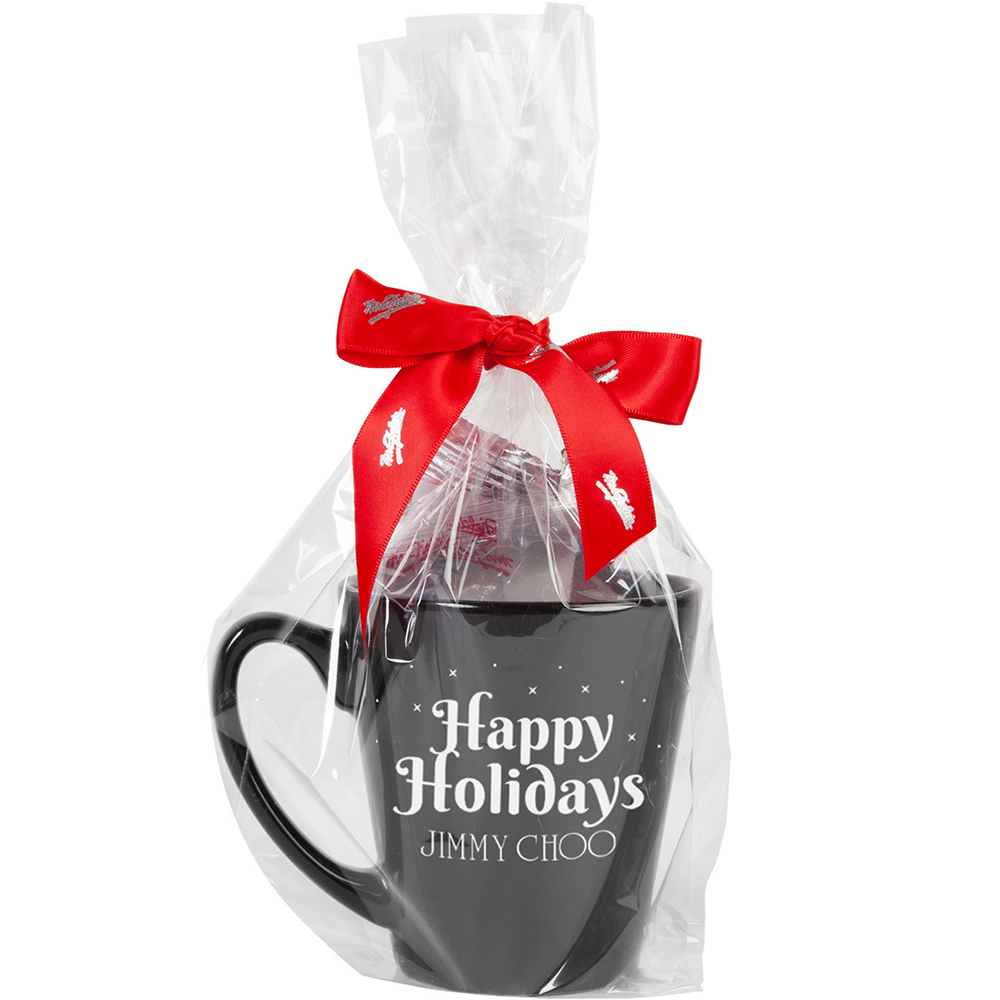 12 Oz Ceramic Coffee mug is filled with (1) 3 pack of Mrs. Fields Chocolate Chip Cookie Nibblers and (1) Custom Hot Chocolate Packet. Gift set comes wrapped in cellophane with Mrs. Fields hand-tied ribbon for a beautiful presentation.