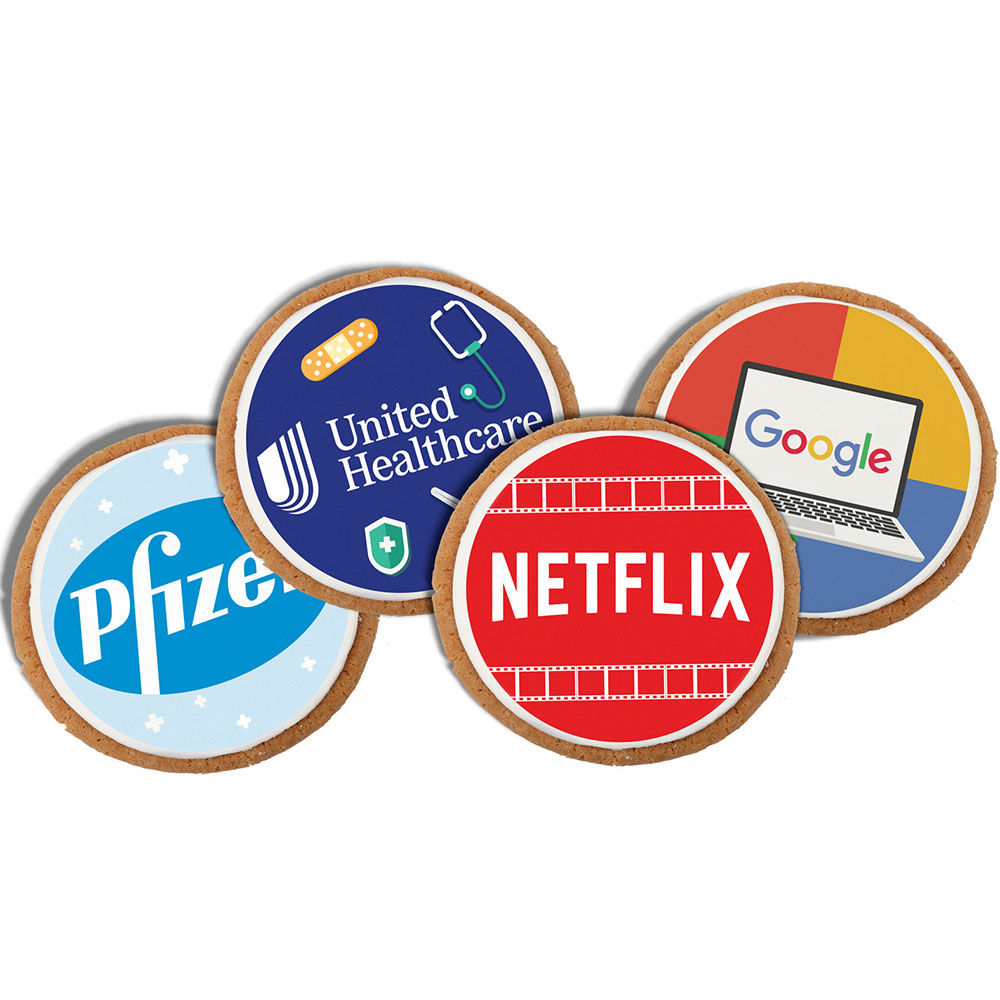 Mrs. Fields Custom Iced Snickerdoodle Cookies are Covered in White Chocolate Fondant Icing and Digitally Printed for a Beautiful Personalized Cookie!. 3" Diameter Full Color Cookie. Must be ordered in increments of 96. Shelf Life (fresh): 2 weeks. Can be frozen & thawed but fresh is recommended. Cookies come individually wrapped in plastic. Digitally Printed- We cannot do a PMS match. Price includes full color imprint.