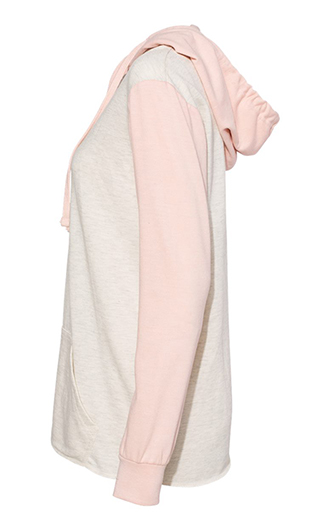 5.3 oz., 55/45 cotton/polyester. V-notch cutout at neck. Contrast-color hood, drawcord and sleeves. 1x1 ribbed knit cuffs. Pouch pocket. Raw-edge bottom hem. Tearaway label. Price includes one color, one location imprint.