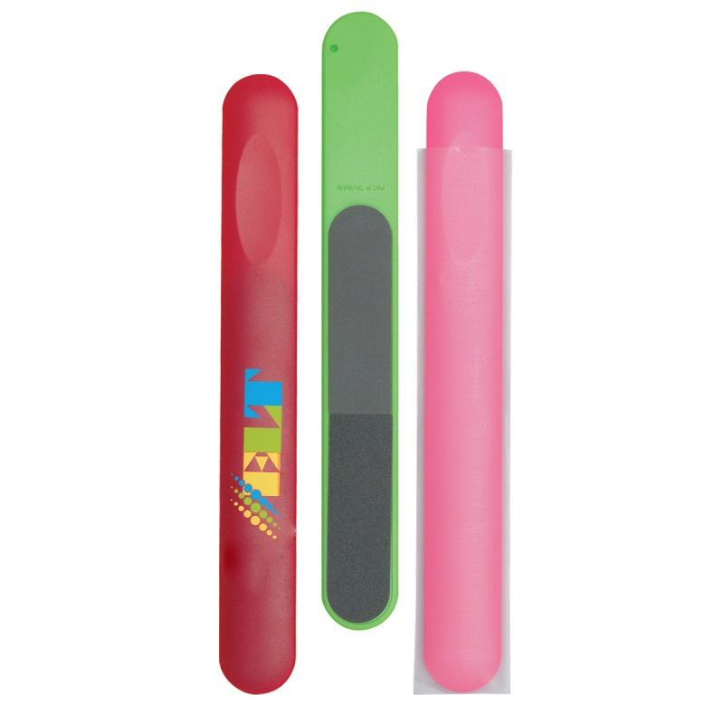 Appreciate customers for their patronage and expand your brand as well with this unique custom nail file set. Nail file and buffer with special contoured shape enables easy reach of all toes and nails. Available in 9 brilliant colors. Price includes one location, full color imprint.