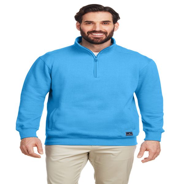Material: 60% cotton, 40% polyester mercerized fleece. Feature: Nautica branded quarter-zip closure with stand collar. Striped neck tape. Ribbed cuffs & hem. Welt handwarmer pockets. Nautica J-Class label at left hem. Deco Eligible. Price includes embroidery.