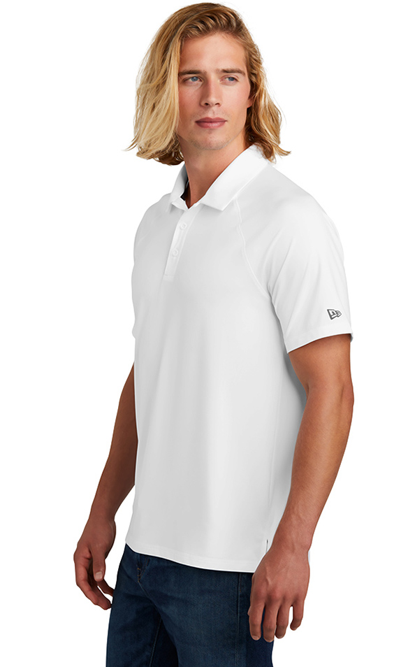 With moisture wicking and stretch, you'll feel the power of performance in this polo that's also brushed for comfort. 4.7-ounce, 91/9 polyester/spandex. Self-fabric collar. Debossed New Era neck taping. Heat transfer label for tag-free comfort. Raglan sleeves. 3-button placket with branded New Era buttons. Price includes embroidery.