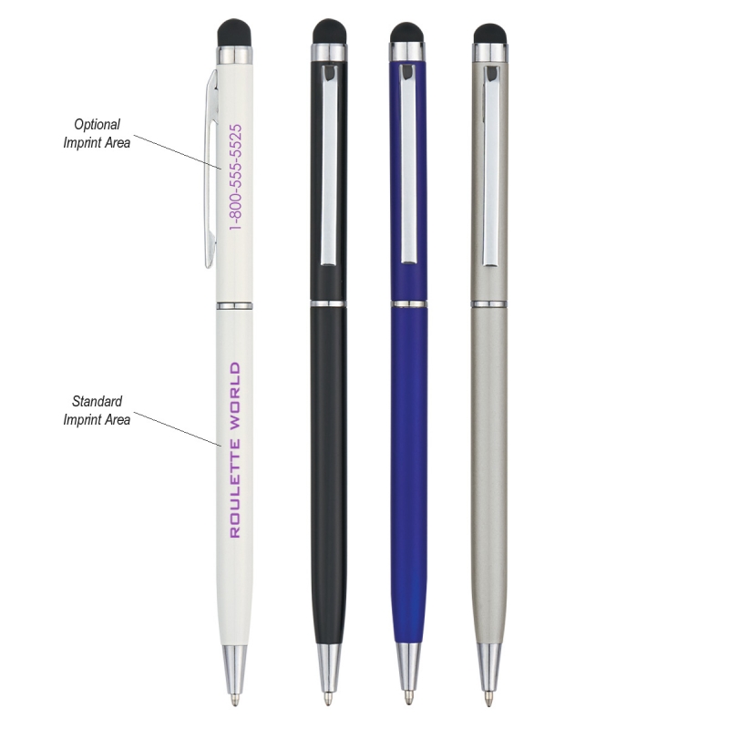 Twist Action, Aluminum Pen, Stylus On Top, Black ink medium point.
