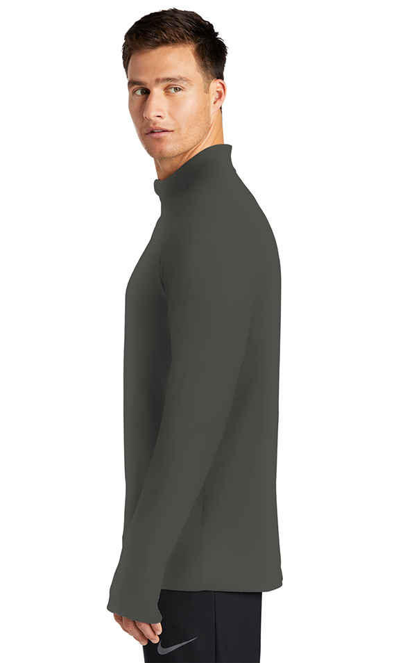 This best-seller delivers all-utility warmth and comfort from the sweat-wicking fabric down to the thumbholes. The stand-up collar and drop tail hem provide additional coverage. A contrast heat transfer Swoosh logo is on the left chest. Solids are made of 5.5-ounce, 88/12 recycled polyester/spandex jersey Dri-FIT fabric. Heathers are made of 5.75-ounce, 88/12 recycled polyester/spandex jersey Dri-FIT fabric. Price includes embroidery.
