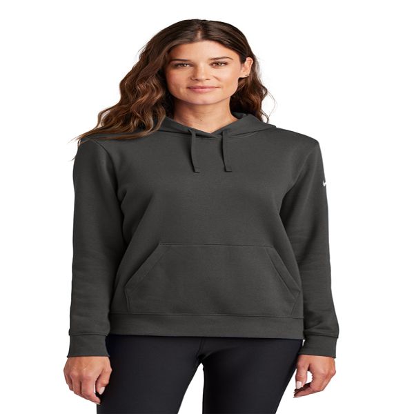 Built with versatility in mind, this brushed-back hoodie is perfect for work or play. Cozy and warm, it is obvious why Club Fleece is Nike's bestselling fleece. Design details include a three-panel hood with dyed-to-match drawcords and a front pouch pocket. Rib knit cuffs and hem. A contrast Swoosh logo is embroidered on left sleeve. Made of 8.3-ounce, 80/20 cotton/polyester. Price includes embroidery.