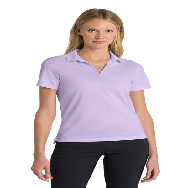 Stay cool when things heat up. Engineered with Dri-FIT fabric which provides moisture management technology. This comfortable micro pique polo has an exceptionally soft hand. Tailored for a feminine fit, the design features a Johnny collar and open hem sleeves. The contrast Swoosh design trademark is embroidered on the left sleeve. Made of 4.4-ounce, 100% polyester. Your price includes embroidery on the left chest.