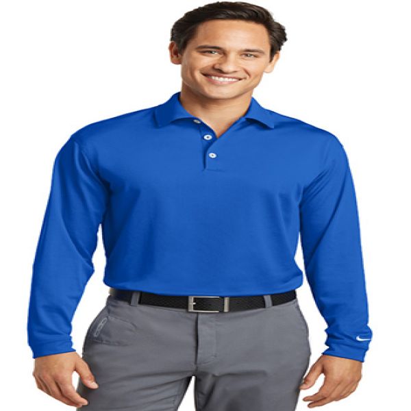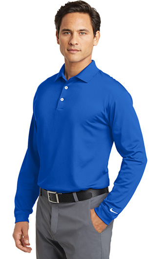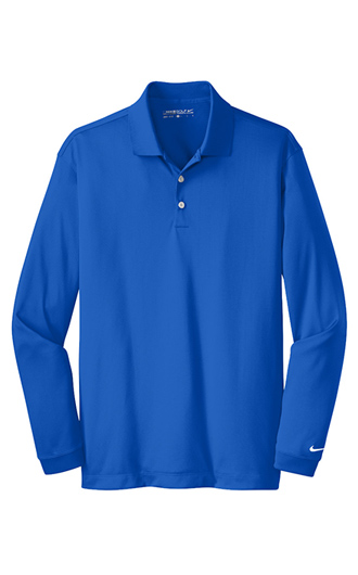 Long sleeves elevate this polo to another level of sophistication while Dri-FIT moisture management technology adds unparalleled performance. Stretch fabric for hassle-free swinging motion. Flat knit collar and cuffs. Heat transfer label for tag-free comfort. Three-button placket. Dyed-to-match buttons on White, Black and Midnight Navy. White buttons on Varsity Red, Anthracite and Blue Sapphire. The contrast Swoosh design trademark is embroidered on the lower left sleeve. Side vents. Made of 5-ounce, 100% polyester Dri-FIT fabric. Your price includes embroidery on the left chest.
