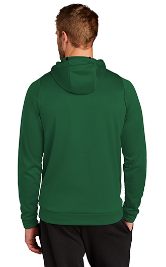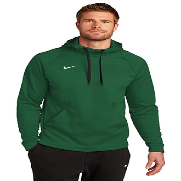Nike has elevated the classic hoodie by improving this year-round essential with incredibly warm Therma-FIT fabric which breathes and manages moisture. The design includes a three-panel hood, front pouch pocket and open cuffs. The contrast heat transfer Swoosh design trademark is on the right chest. Made of 7.4-ounce, 100% polyester Therma-FIT fabric. Price includes a one color imprint on left chest.