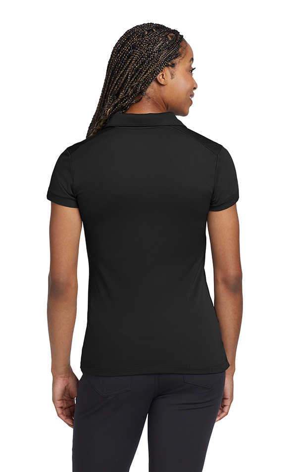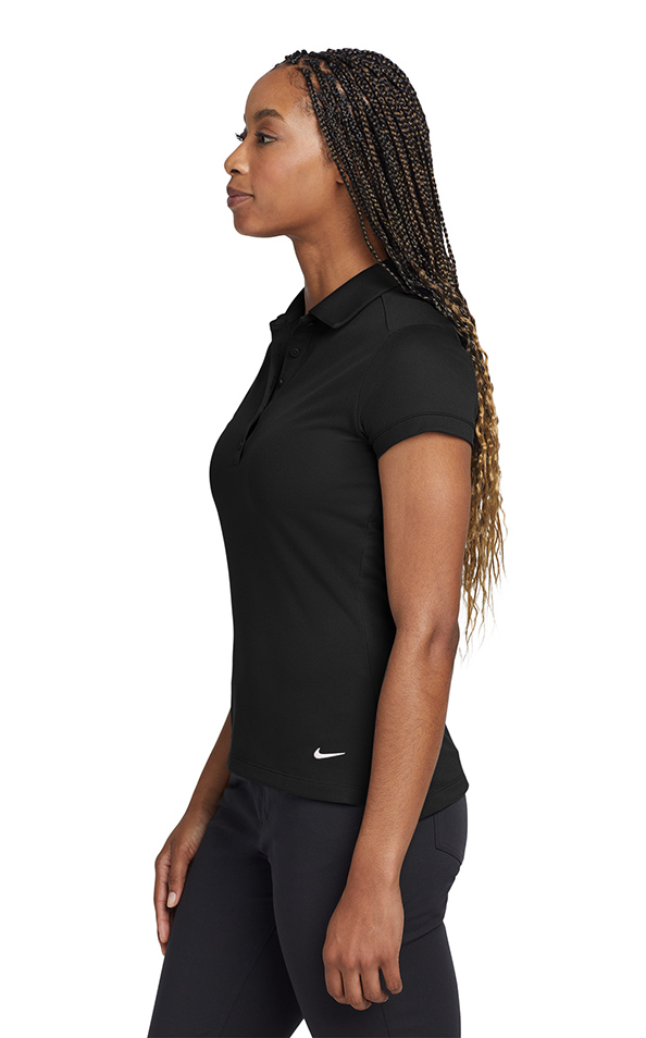 Dri-FIT moisture management technology achieves maximum comfort, while an iconic look gives this pique polo modern style. 4.7-ounce, 100% polyester pique Dri-FIT fabric. Tailored for a feminine fit. Self-fabric collar. Five-button placket. Dyed-to-match buttons. Open hem sleeves. Contrast embroidered Swoosh on left hem. Price includes embroidery.