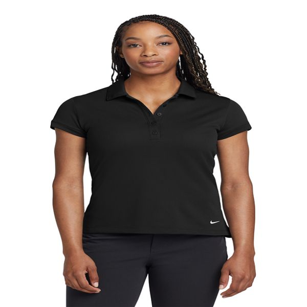 Dri-FIT moisture management technology achieves maximum comfort, while an iconic look gives this pique polo modern style. 4.7-ounce, 100% polyester pique Dri-FIT fabric. Tailored for a feminine fit. Self-fabric collar. Five-button placket. Dyed-to-match buttons. Open hem sleeves. Contrast embroidered Swoosh on left hem. Price includes embroidery.
