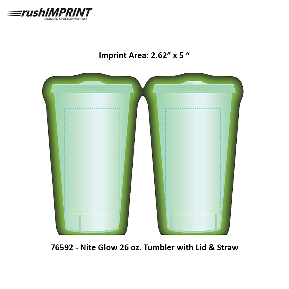 Glows in the dark. Nite Glow effect activated by exposure to light. Cup made from durable PP plastic. Lid made from durable PE plastic. Sip through, snap on lid. Straw included. Optional gift box holds Set of 4 - Tumblers, Lids & Straws. Additional $5 (G) per Box. Includes assembly and insertion of Items into box. Not recommended for hot beverages.Top shelf dishwasher safe. Price includes one color, one location imprint.