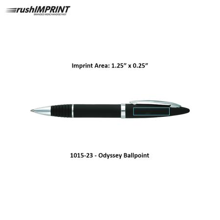 Use the Odyssey Ballpoint to take notes, brainstorm ideas, or record your important thoughts and messages. It features a spray rubber coated finish with bold chrome contrast accents, has a comfortable rubber grip, and uses a simple twist-action mechanism to operate. The Odyssey is durably made from quality brass materials and includes a premium black ballpoint ink cartridge. Material: Brass. Spray rubber coated. Sleek chrome accents. Rubber comfort grip. Twist-action mechanism. Comes with premium black ballpoint ink.