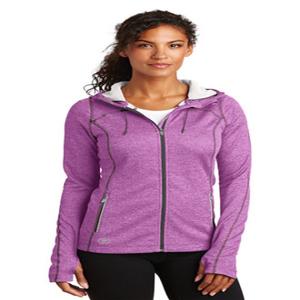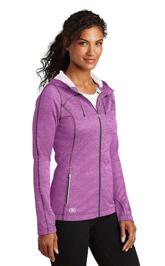 Layerable Warmth. Stretch. Reflective. Details. 6.2-ounce, 100% poly heather. Interior textured fleece. Reflective OGIO Endurance heat transfer label for tag-free comfort. Three-panel hood with drawcord and toggles. Reflective O heat transfer at hood. Lower front zippered pockets with reflective taping and clear silicone zipper pulls. Set-in sleeves with shaped cuffs and thumbholes for warmth. Reflective O Endurance heat transfer at back left panel. Reflective O heat transfer at front right hem. Your price includes embroidery on the left chest.