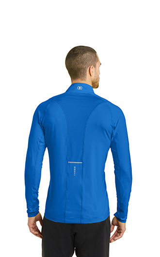 STAY-COOL WICKING. ODOR CONTROL. ZONED VENTILATION. STRETCH. FLATLOCK SEAMS FOR COMFORT. REFLECTIVE DETAILS. 5.6-ounce, 88/12 poly/spandex jersey body. 4.1-ounce, 92/8 poly/spandex mesh panels. Reflective taping at zipper and back panel. Mesh at center back and under arms. Reflective O heat transfer at back neck. Reflective stacked O heat transfers at back and sleeves. OGIO Endurance heat transfer label for tag-free comfort. Modified raglan sleeves with thumbholes for warmth. Slight drop tail hem. Reflective O Endurance heat transfer at right hem. Reflective O Endurance heat transfer at right hem. Price includes embroidery up to 5k stitches.