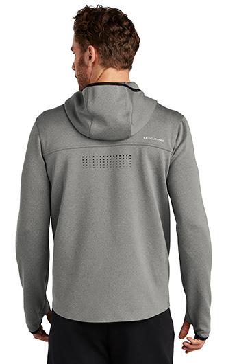 STAY-COOL WICKING. STRETCH. REFLECTIVE DETAILS. 8.6-ounce, 95/5 poly/spandex with stay-cool wicking technology. OGIO heat transfer label for tag-free comfort. OGIO embossed neck taping. Black binding around hood and cuffs. Black reverse-coil locking zipper with chin guard. Zippered right chest pocket. Ventilating perforation on center back. Reflective O Endurance on back right shoulder. Front pockets with mesh lining. Thumbholes. Curved back hem. Reflective O on front left hip. Price includes embroidery.