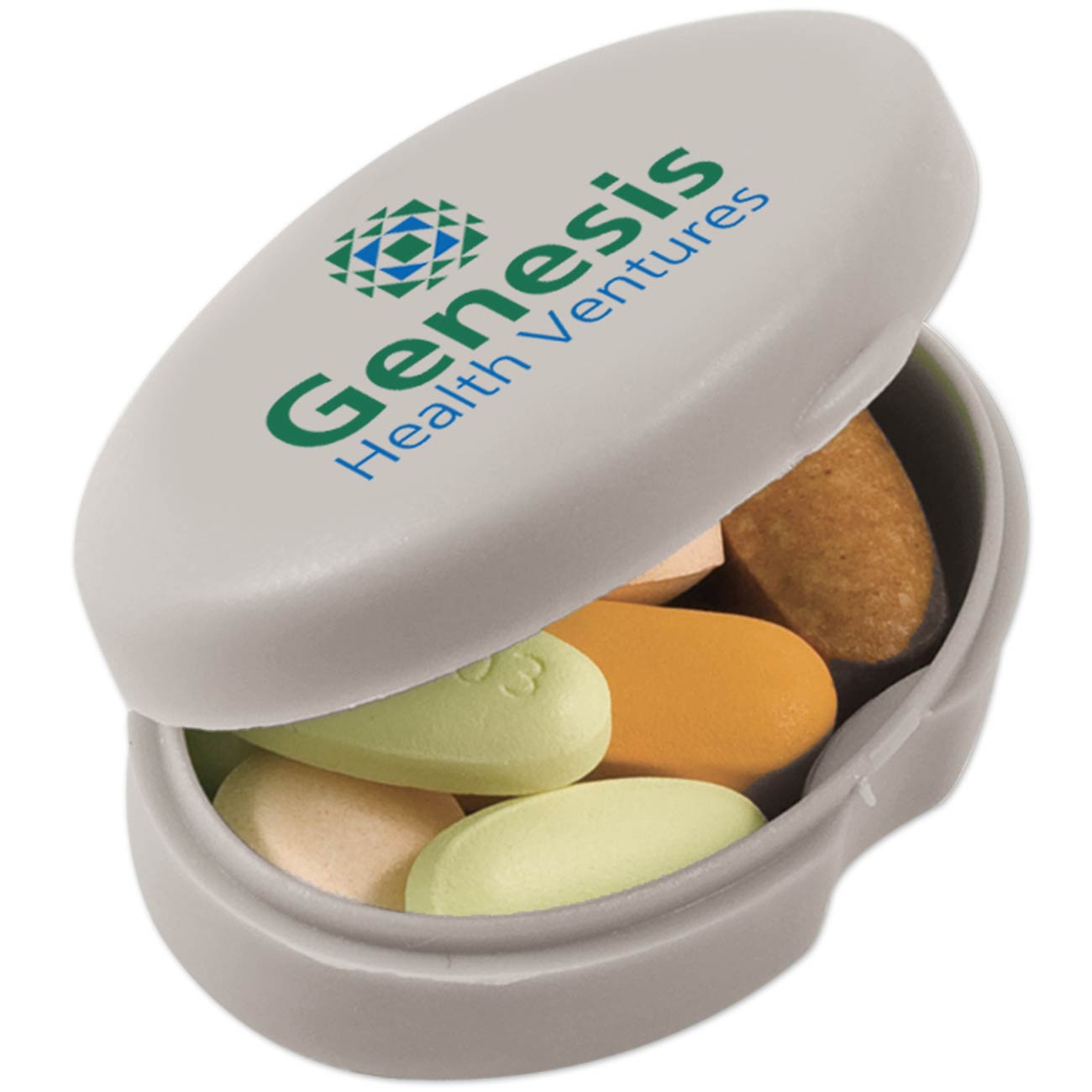 Model: 3575 Oval Pill Boxes Product Description Oval-shaped, lightweight, compact design fits in pockets or purses to carry a variety of pills, large or small. Price includes one color imprint, one location.We do offer PMS matching for $50 please call for details. Size: 1.31"h x 1.88"w x 0.88"d Imprint Area: 0.88"h x 1.25"w Request A Virtual Proof Request A Free Sample Select Color Red Orange White Blue Translucent Red Translucent Green Translucent Blue Translucent Orange Translucent Aqua Choose Quantity View Price Breaks Quantity Price 250 $0.76 500 $0.71 1000 $0.66 2500 $0.64 5000 $0.62 Enter quantity or drag slider. Minimum quantity is 250. Quantity: Price Each $0.76 Setup Charge: $55.00 Subtotal $245.00 Savings: $ over minimum qty pricing Choose Your Quantity Quantity Price 250 $0.76 500 $0.71 1000 $0.66 2500 $0.64 5000 $0.62 Standard Production Time: 6 business days Select Delivery Date Enter ZIP Code Apply Loading... Choose a Shipping Method -- Loading Shipping Prices -- Customize it! Upload Your Art Now Or Send it Later. Select Imprint Color(s) Back to Edit Product Color And Quantity Where on the item should we print your design? 1.25" x 0.88" Available print design areas 1.25" x 0.88" What imprint Color(s) would you like? (Maximum # of Imprint Colors: 3) White Black Metallic Gold 872 Metallic Silver 877 Ivory PMS 7527 PMS Cool Gray 10 PMS 123 PMS 166 PMS 186 PMS 202 PMS 259 PMS 286 PMS 289 Process Blue PMS 343 PMS 348 PMS 3278 PMS 476 PMS 189 Neon Pink White Black Metallic Gold 872 Metallic Silver 877 Ivory PMS 7527 PMS Cool Gray 10 PMS 123 PMS 166 PMS 186 PMS 202 PMS 259 PMS 286 PMS 289 Process Blue PMS 343 PMS 348 PMS 3278 PMS 476 PMS 189 Neon Pink Add Additional Imprint Color Product Color: Select product color Quantity: 250 Add Your Artwork Add Artwork Add Now Send After Checkout Don’t have artwork? That’s ok! Artwork is not required to start a job. Simply skip this step and email us artwork later (helpdesk@claytonkendall.com). If you need assistance with your art, our designers can help with that too! Will I be able to approve my design before it goes into print? Yes! You will receive a digital mock-up of your artwork on this item within a few hours of placing your order. We will send your order into production only after you approve the mock-up. Only Image Aa Only Text Aa Text/Image Contact Us Enter Your Text Choose file Uploading logo. Please wait... Personalize your design by adding text and customizing its shape with a curve. Upload your logo to give it a professional touch, and combine these elements to create a one-of-a-kind design that’s uniquely yours. Open Product Designer Don’t have artwork? That’s ok! Artwork is not required to start a job. Simply skip this step and email us artwork later. If you need assistance with your art, our designers can help with that too! Will I be able to approve my design before it goes into print? Yes! You will receive a digital mock-up of your artwork on this item within a few hours of placing your order. We will send your order into production only after you approve the mock-up. Free art proof will be emailed with every order within one business day Total (loading...) qty x Set Up Shipping Cost Rush Charge Custom Fields Hazmat Fee Estimate arrival Savings Add to Cart Updating Price...