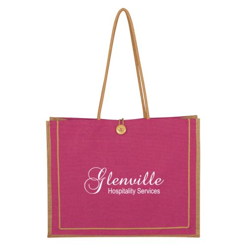 Made Of 100% Pure Natural Jute, A Natural Vegetable Fiber, 25" Cotton Cord Carrying Handles, Top Button Loop Closure, Colors Created With Azo-Free Dye, Spot Clean/Air Dry