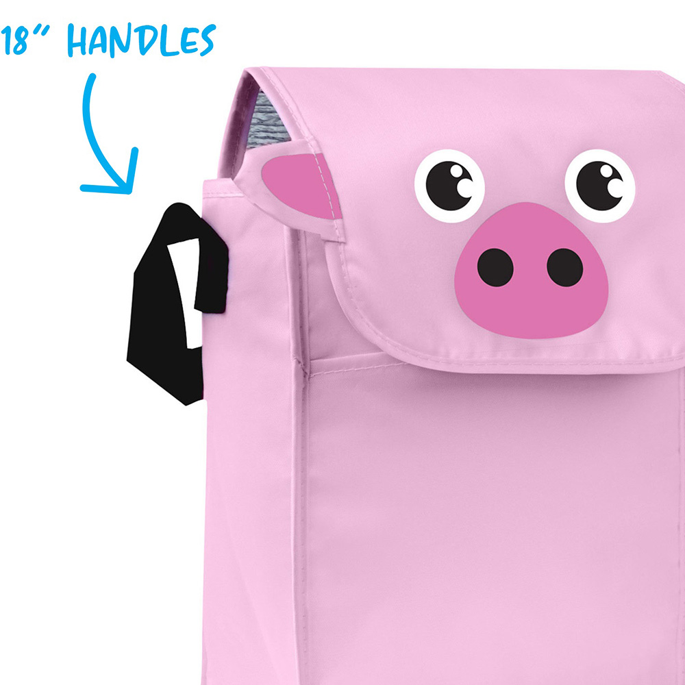 Exclusive copyrighted designs. Fold over hook & loop tape closure and foil insulated. Front slip pocket and 18" handle.