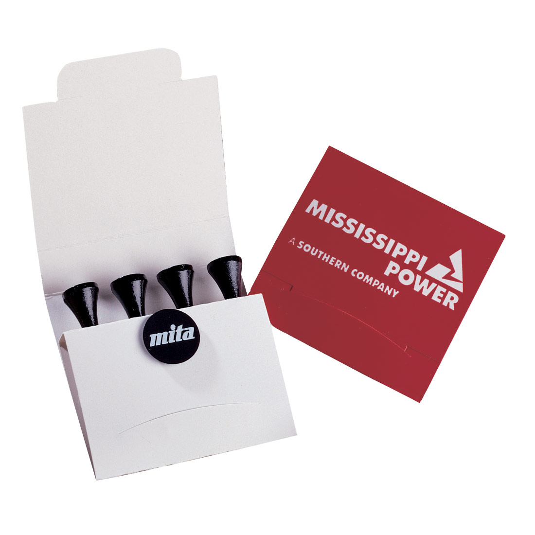 The Pebble Golf Kit is an innovative matchbook style golf tees kit, each containing 4 black golf tees and ball marker. Makes a memorabilia for golf tournaments, kit stores and golf theme occasions. Have a name and logo printed on card front for customization. Price includes a one color imprint.