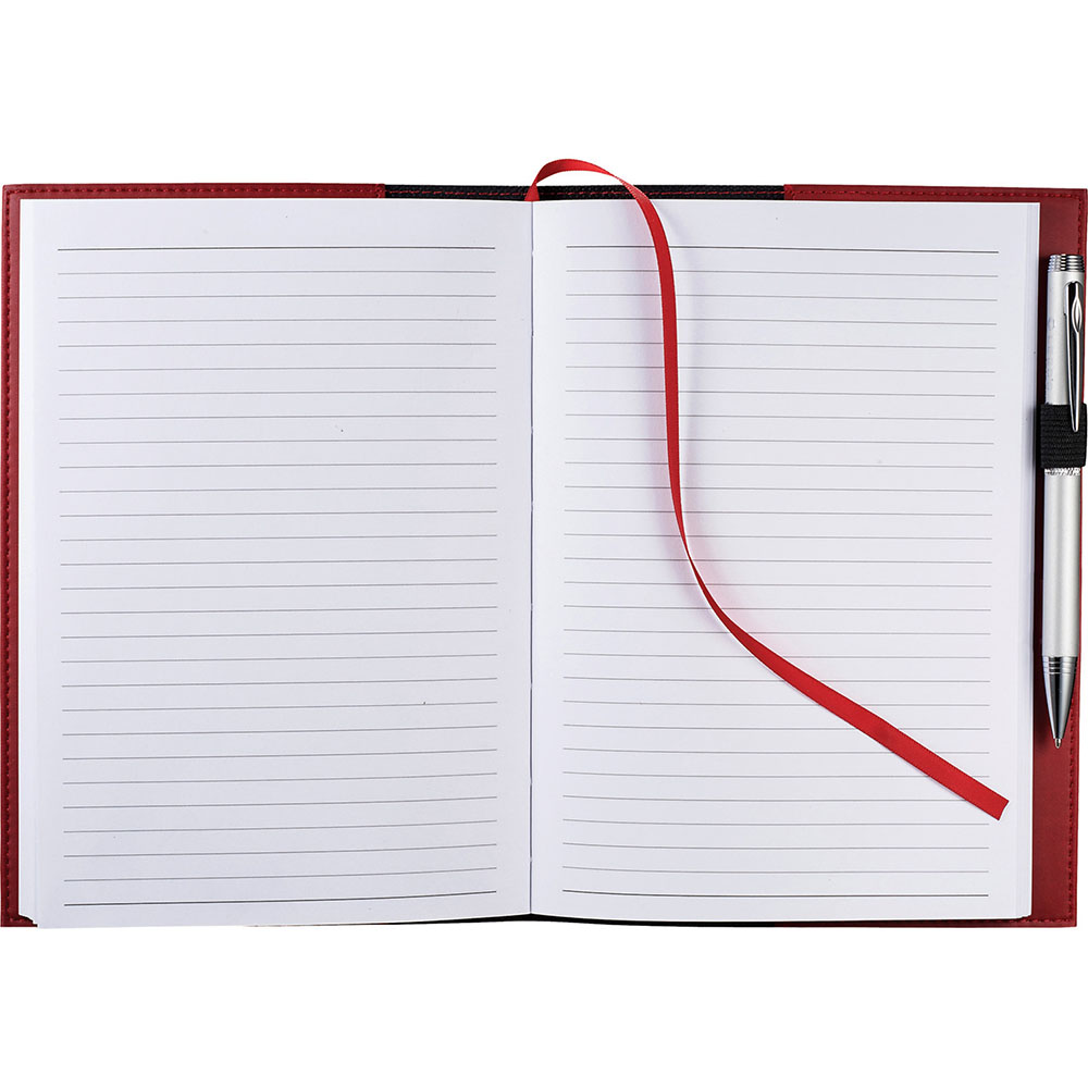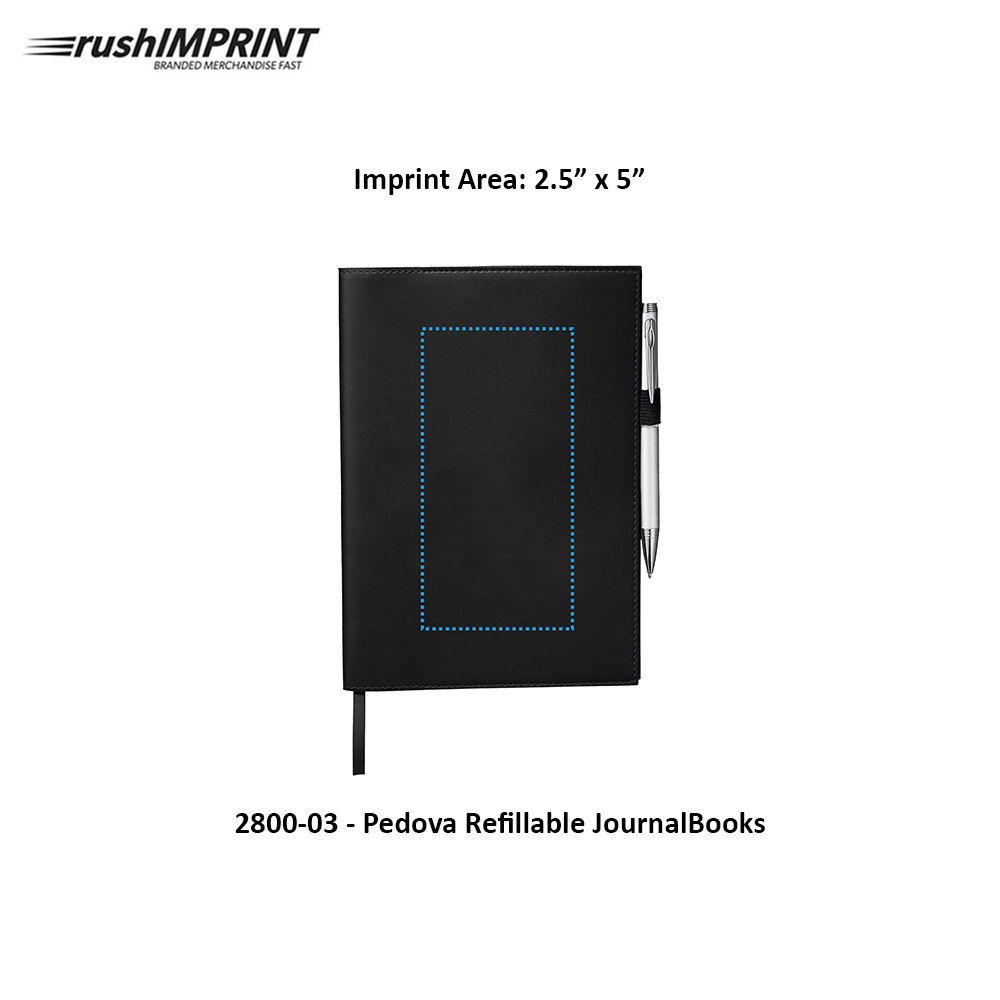 The 6" x 8.5" FSC® Mix Pedova™ Refillable JournalBook® comes with 80 sheets of white lined FSC® Mix paper and features a unique refillable design, with extra paper (9091-98RF) available to order separately. Its cover is constructed from luxurious Italian UltraHyde materials, letting you take notes and record ideas with style. This convenient notebook has a built-in ribbon page marker to hold your place, plus a stretchy elastic pen loop. Pen is not included.
