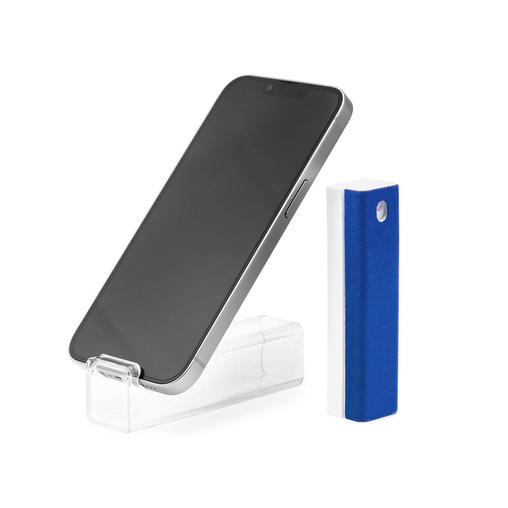 Stay clean and productive with this phone stand and case featuring SP62 Phone Screen Cleaner. Easy-access solution to keep your phone clean. Up to 500 sprays and 0.73 oz of cleaning solution. Built-in microfiber screen cleaner. Refillable spray bottle. Case also serves as a phone stand. Material: Microfiber,Polypropylene. Price includes one color, one location imprint.