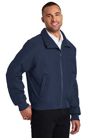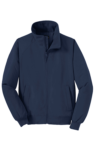 All the hardworking performance of our favorite bomber-style jacket--at an exceptionally good price. The Charger Jacket withstands cold temps with a water-resistant shell, warm heavyweight fleece lining and polyfill insulated sleeves. Dyed-to-match lining and zippers give it a clean, cohesive look. 100% polyester Taslan shell. 9.3-ounce, 100% polyester fleece body lining. 100% polyester heavyweight polyfill sleeve lining . Molded center front zipper. Front zippered slash pockets. Interior pocket. Rib knit cuffs and waistband. Port Pocket for easy embroidery access. Your price includes embroidery on the left chest.