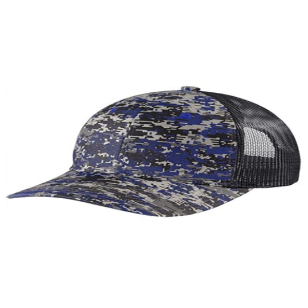 Fabric: 100% cotton twill front panels; 100% polyester mesh mid and back panels. Structure: Structured. Profile: Mid. Closure: 7-position adjustable snapback.