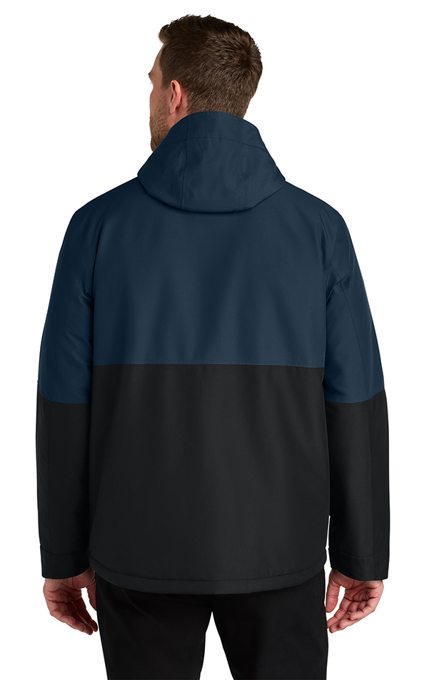Primed for the slopes or any cold-weather commute, this storm-ready 8K/5K jacket has a compelling colorblock design and features fleece in the upper body for extra warmth. 100% polyester ripstop shell. 2.3-ounce, 100% polyester polyfill insulation (upper body). 2.9-ounce, 100% polyester polyfill insulation (hood, lower body and sleeves). Fabric waterproof rating: 8000MM. Fabric breathability rating: 5000G/M2. Adjustable hood with locking drawcords. Full-length interior storm flap. Interior chest pocket under storm flap. Full-length exterior storm flap with snap and hook and loop closures. Adjustable cuffs with hook and loop closures. Zippered hand pockets. Adjustable locking drawcord at hem. Port Pocket for decoration access. Water protection method: Durable water-repellent (DWR) finish, fully seam-sealed. Price includes embroidery.