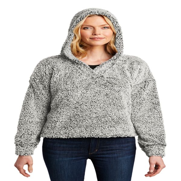 Ultra-soft meets cozy warmth in this layerable sherpa fleece hoodie. Ideal for cooler days, it’s comfortable, versatile and designed to fend off the chill in style. 6.8-ounce, 100% polyester sherpa fleece. Three-panel hood. Drop shoulder. Open cuffs and hem. Price includes embroidery.
