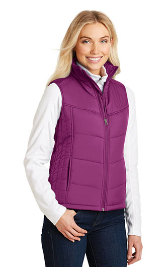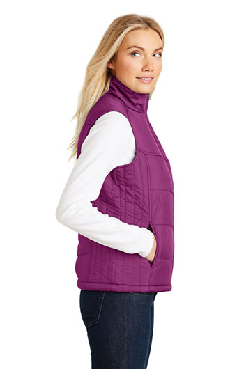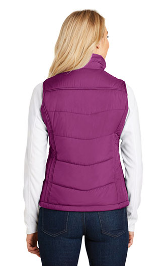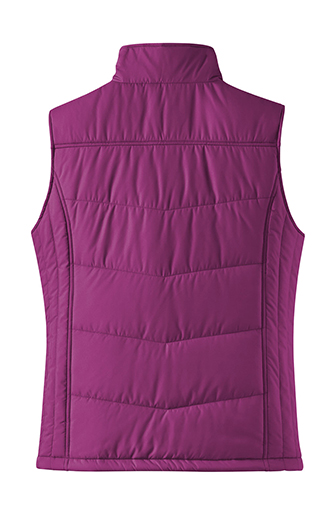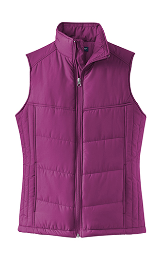Keep the warmth centered on your core in our Puffy Vest. These styles are great for layering over a long sleeve shirt or under a jacket. Some feature a colorful lining. 100% polyester shell. 100% polyester lining. Reverse coil center front zipper. Interior storm flap. Interior zippered pocket. Interior pocket with drawcord and toggle. Front zippered pockets. Port Pocket for easy embroidery access. Open hem with drawcord and toggles for adjustability. Your price includes embroidery on the left chest.