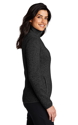 The comfort of a sweater joins the unbeatable warmth of fleece in this modern style. Contrast binding at the pockets heightens the visual appeal. 8.8-ounce, 100% polyester sweater fleece. Reverse coil zipper. Chin guard. Full-length interior storm flap. Front reverse coil zippered pockets with binding trim. Knotted zipper pulls. Contrast stretch binding at cuffs and hem. Price includes embroidery.