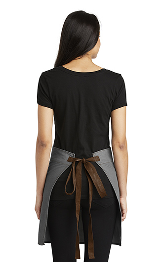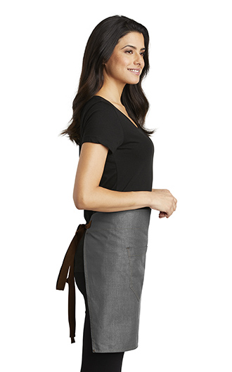 Urban distinction sets this apron apart from the rest. Performance combines with style in the denim-like, wrinkle-resistant fabric. 7-ounce, 60/40 cotton/poly yarn-dyed twill. Contrast webbing waist ties. Patch pocket, pen pocket. Contrast stitch details. Measures: 27"w x 18"l. Price includes embroidery up to 5k stitches.