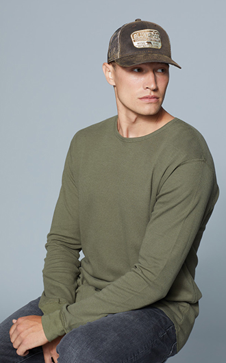 Fabric: 52/48 cotton/poly front panels; 100% polyester mesh mid and back panels. Structure: Structured. Profile: Mid. Closure: Hook and loop.