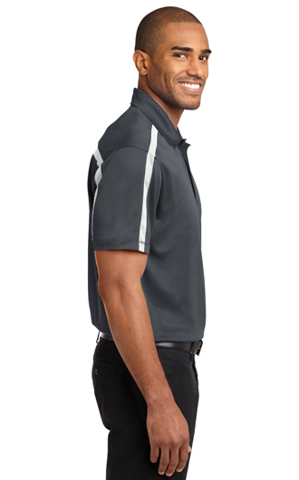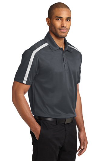 A stripe on the front, back, shoulders and sleeves adds bold contrast to our high-performance polo that wicks moisture and resists snags. PosiCharge technology delivers exceptional colorfastness and optimal printability.. 4-ounce, 100% polyester double knit with PosiCharge technology; White is 4.3-ounce for increased coverage. Self-fabric collar. Tag-free label. 3-button placket. Dyed-to-match buttons. Open hem sleeves. Price includes a one color imprint on left chest.