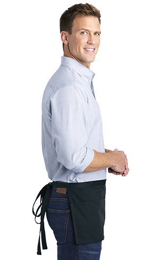 This versatile, durable apron is the perfect choice for waitstaff or home use. 7-ounce, 65/35 poly/cotton twill. Three front patch pockets, pen pocket. Self-fabric ties. Color-coordinates with CP80, C914 and CP45 caps. Measures: 23"w x 11"l. Price includes embroidery up to 5k stitches.