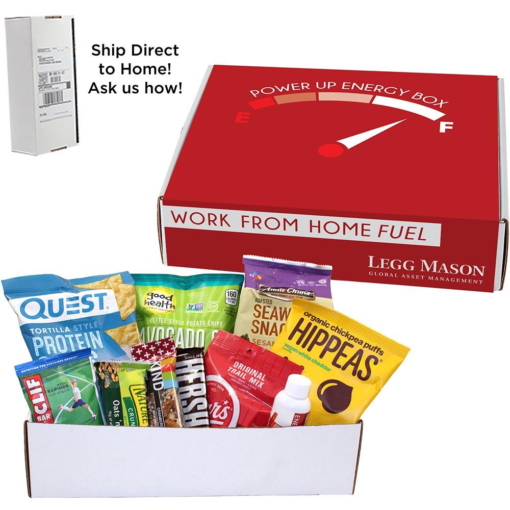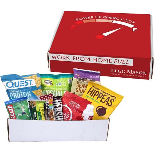 Large Mailer Box With Retail Packaged Snacks - Seaweed Snacks (0.35 oz.), HERSHEY'S Special Dark Chocolate Bar (1.45 oz.), Kars Trail Mix (2 oz.), Quest Ranch Protein Chips (1.1 oz.), Hippeas White Cheddar Puffs (1 oz.), Cranberry Almond Kind Bar (1.4 oz.), Chocolate Chip Clif Bar (2.4 oz.), Good Health Kettle Chips (1 oz.), Nature Valley Granola Bar (1.49 oz.), Energy Shot (2 oz.) Price includes fll color imprint.