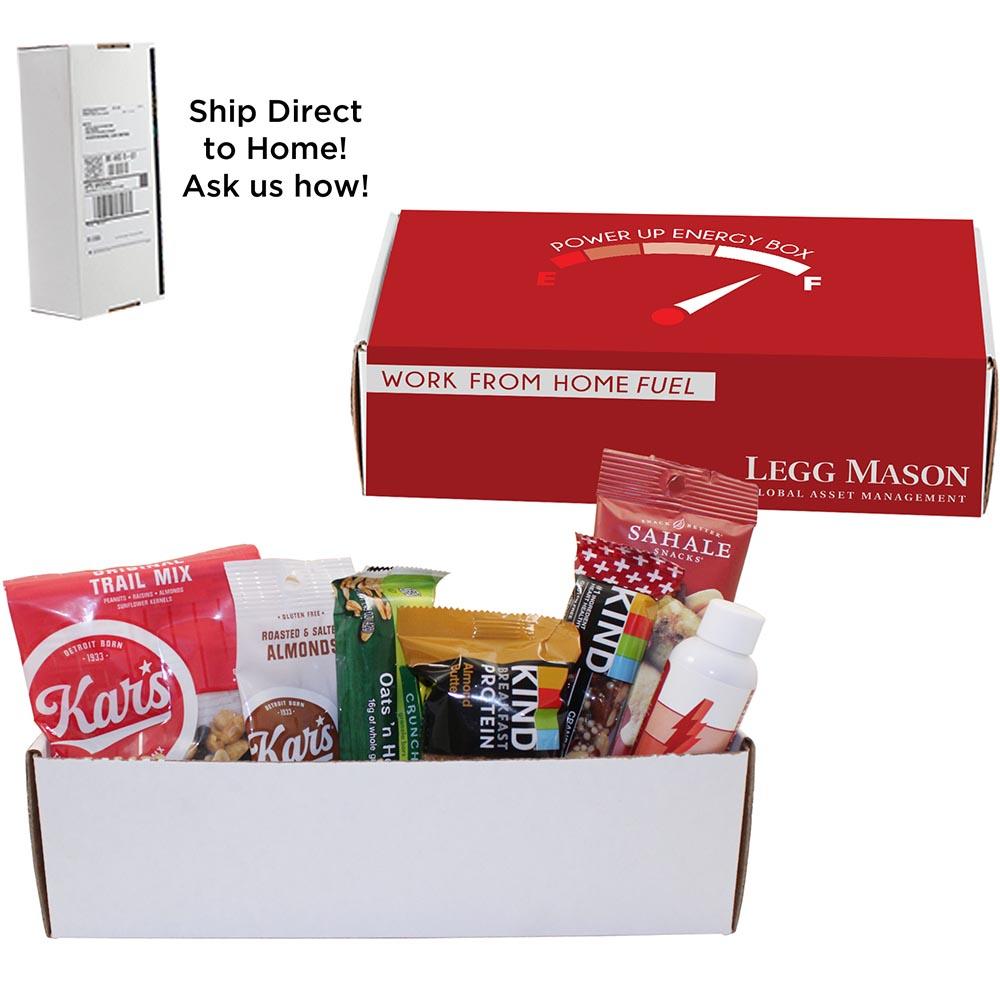 Small Mailer Box With Retail Packaged Snacks - KIND Bar (1.4 OZ), KIND Breakfast Bar (1.76 OZ), SAHALE Snacks Raspberry Crumble (1.5 OZ), Nature's Valley Granola Bar (1.49 OZ), Kars ALMOND (1 OZ), Kars TRAIL MIX (2 OZ), ENERGY SHOT (2 OZ) Price includes fll color imprint.