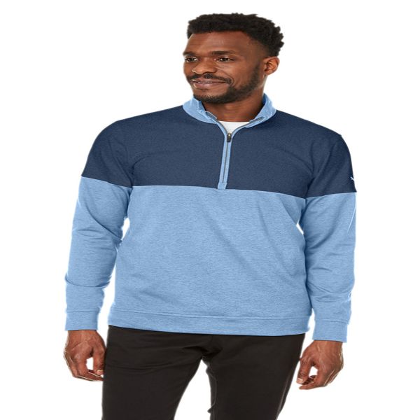 Fabric: 87% polyester, 13% elastane. Moisture-wicking performance. UPF 40 protection. CLOUDSPUN, a proprietary fabric to PUMA, delivers an ultra-soft feel with four-way stretch. Feature:Mock collar. Drawcord on hem for an adjustable fit. Quarter-zip construction for easy layering and adjustable warmth. Deco Eligible. Price includes embroidery.