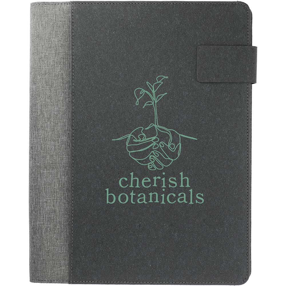 Packed with power allowing you to charge your smartphone without the cables. The removeable UL listed, 5000 mAh rechargeable powerbank supports wireless charging along side the pop charging stand at up to 1A for devices including but not limited to iPhone series, Samsung Galaxy Note. If want to charge an iPhone series before iPhone 8 with wireless technology, you will need to connect micro USB charging cable to Powerbank. Front pocket, interior mesh pocket, elastic pen loop and business card pockets. Magnetic closure. Includes 8.5" x 11" writing pad with 30 sheets of recycled lined paper. Includes FSC cardboard gift box, micro to USB cable and instruction manual.Through a partnership with 1% For The Planet, one percent of sales of this and all EcoSmart products will be donated to nonprofits dedicated to protecting the planet. Material: Recycled PET.