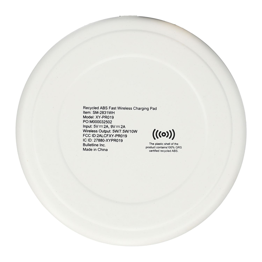 The Recycled ABS Fast Wireless Charging Pad supports three different wireless charging modes (5W/7.5W/10W), making it compatible with various devices. Use a quick charge power adapter (10W at least, not included) for fast charging. Includes a 39-inch USB-A-to-Type-C charging cable. Packaged in a FSC-certified natural gift box. The case is made of 100% recycled ABS plastic material. By choosing this charging pad, you're also supporting environmental nonprofits through our partnership with 1% For The Planet.