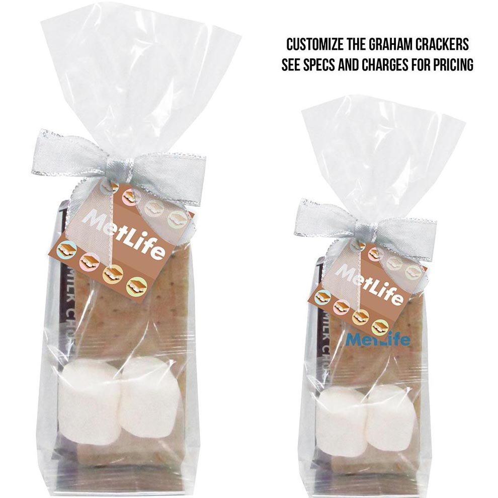 EMSMK S'mores Kit Mug Stuffer. Includes: 2 Graham Cracker Sheets, 1 HERSHEY'S® Milk Chocolate Ba, 2 Marshmallows. Makes 2 servings. Price includes full color imprint.