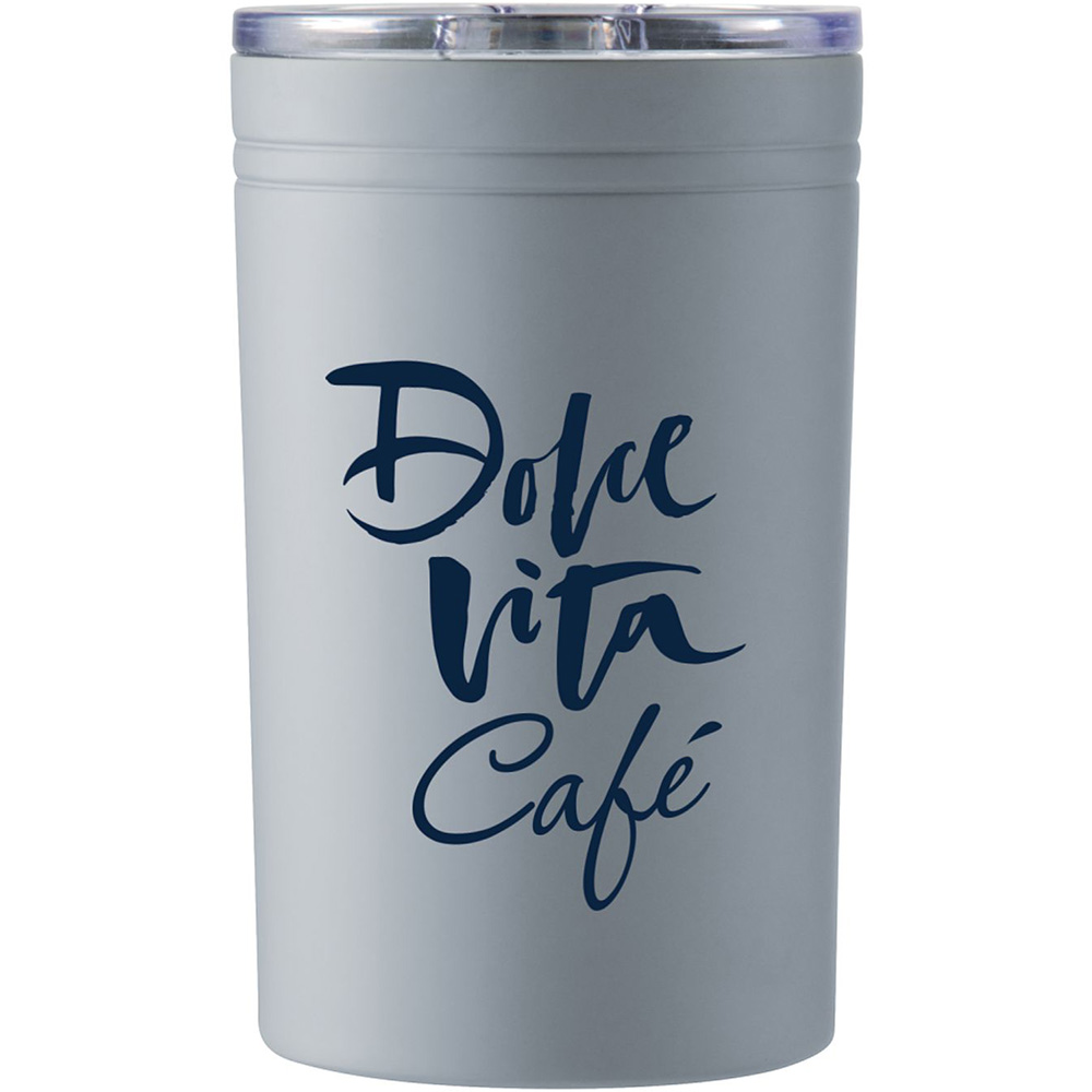 The Sherpa 11oz Vacuum Tumbler & Insulator from Bullet features rugged, insulated double-wall construction to keep beverages hot for up to five hours or cold for up to 15 hours. It includes a clear, press-on lid with an easy-to-use slide closure. This item doubles as a tumbler and portable can insulator, allowing you to enjoy your favorite drinks almost anywhere. Multifunctional drinkware doubles as a tumbler or can insulator. Condensation-resistant. Transparent lid with slide closure presses on securely. Keeps your drink hot for up to five hours or cold for up to 15 hours. Hand-wash only. Care guidelines included. Price includes one color, one location imprint.