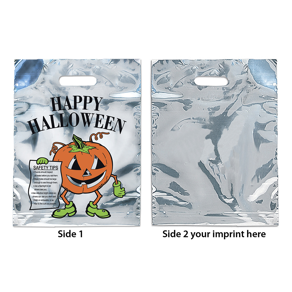 Model: 31HAM1115 Silver Reflective Pumpkin Bags - 11W x 15H View Imprint Area Product Description This 2.5 mil. silver reflective plastic bag features die cut handles and stock pumpkin design featuring safety tips. Add your custom imprint to the opposite side of the bag. Price includes one color, one location imprint. Size: 15"h x 11"w Imprint Area: 8"h x 7"w Request A Virtual Proof Choose Quantity View Price Breaks Quantity Price 150 $1.74 250 $1.11 500 $0.79 1000 $0.75 3000 $0.73 Enter quantity or drag slider. Minimum quantity is 150. Quantity: Price Each $1.74 Setup Charge: $60.00 Subtotal $321.00 Savings: $ over minimum qty pricing Choose Your Quantity Quantity Price 150 $1.74 250 $1.11 500 $0.79 1000 $0.75 3000 $0.73 Standard Production Time: 4 business days Select Delivery Date Enter ZIP Code Apply Loading... Choose a Shipping Method -- Loading Shipping Prices -- Customize it! Upload Your Art Now Or Send it Later. Select Imprint Color(s) Back to Edit Product Color And Quantity Where on the item should we print your design? Front Available print design areas Front What imprint Color(s) would you like? (Maximum # of Imprint Colors: 1) White Yellow Pink PMS 021 PMS 211 PMS 485 Black Rubine Red PMS 032 PMS 185 PMS 199 Medium Purple Bright Red PMS 201 PMS 208 Process Blue Dark Blue PMS 300 PMS 540 PMS 293 Reflex Blue PMS 072 PMS 282 PMS 320 PMS 327 PMS 354 PMS 349 Pantone Violet PMS 267 PMS 469 PMS COOL Gray 8 Metallic Silver Metallic Gold Metallic Copper Metallic Pink Metallic Purple Metallic Blue Metallic Teal Blue Metallic Green Metallic Platinum Metallic Russett Metallic Rose Gold White Yellow Pink PMS 021 PMS 211 PMS 485 Black Rubine Red PMS 032 PMS 185 PMS 199 Medium Purple Bright Red PMS 201 PMS 208 Process Blue Dark Blue PMS 300 PMS 540 PMS 293 Reflex Blue PMS 072 PMS 282 PMS 320 PMS 327 PMS 354 PMS 349 Pantone Violet PMS 267 PMS 469 PMS COOL Gray 8 Metallic Silver Metallic Gold Metallic Copper Metallic Pink Metallic Purple Metallic Blue Metallic Teal Blue Metallic Green Metallic Platinum Metallic Russett Metallic Rose Gold Quantity: 150 Add Your Artwork Add Artwork Add Now Send After Checkout Don’t have artwork? That’s ok! Artwork is not required to start a job. Simply skip this step and email us artwork later (helpdesk@claytonkendall.com). If you need assistance with your art, our designers can help with that too! Will I be able to approve my design before it goes into print? Yes! You will receive a digital mock-up of your artwork on this item within a few hours of placing your order. We will send your order into production only after you approve the mock-up. Only Image Aa Only Text Aa Text/Image Designer Contact Us Enter Your Text Choose file Uploading logo. Please wait... Personalize your design by adding text and customizing its shape with a curve. Upload your logo to give it a professional touch, and combine these elements to create a one-of-a-kind design that’s uniquely yours. Open Product Designer Don’t have artwork? That’s ok! Artwork is not required to start a job. Simply skip this step and email us artwork later. If you need assistance with your art, our designers can help with that too! Will I be able to approve my design before it goes into print? Yes! You will receive a digital mock-up of your artwork on this item within a few hours of placing your order. We will send your order into production only after you approve the mock-up. Free art proof will be emailed with every order within one business day Total (loading...) qty x Set Up Shipping Cost Rush Charge Custom Fields Hazmat Fee Estimate arrival Savings Add to Cart Updating Price...
