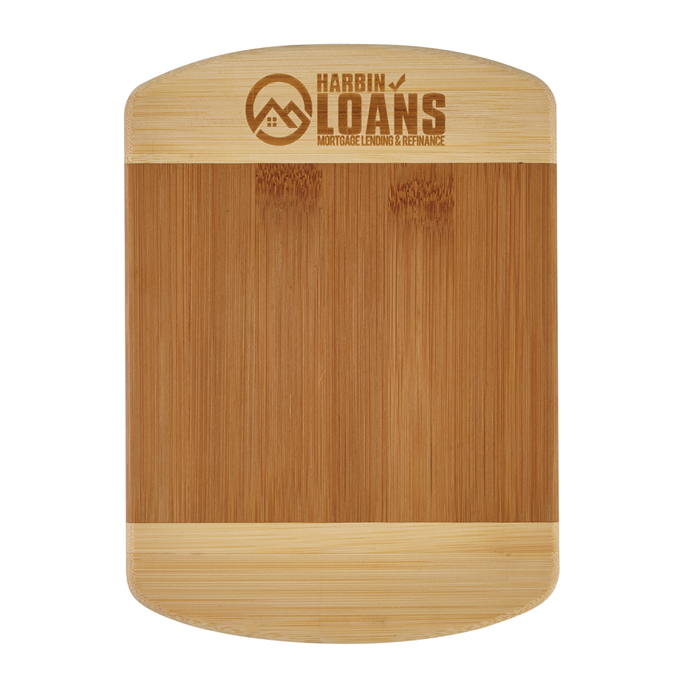 Two-tone bamboo board. Naturally heat and bacteria resistant. Eco-friendly - 100% renewable resource. Includes laser engraved imprint. Meets FDA requirements. Best to hand wash with warm water and mild soap/detergent. Due to natural variations in the grain, laser engraved imprints may have slightly different shades. Price includes laser engraving.