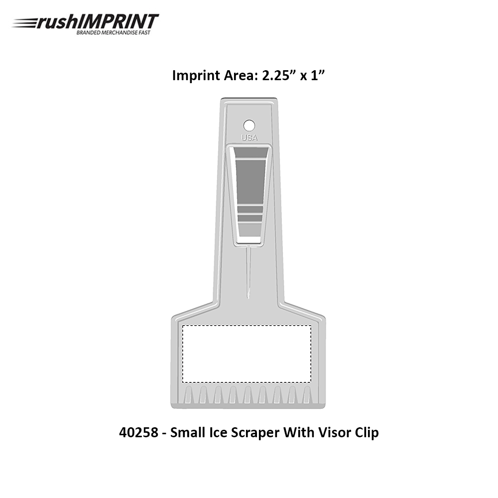 Break-resistant plastic. Visor clip. Scraping edge will not mark glass. Convenient size. Price includes hot stamp.