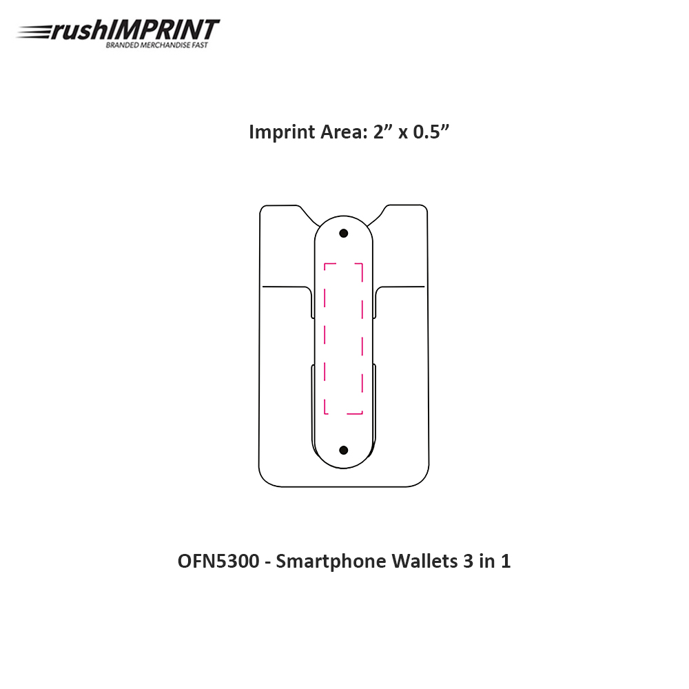 Smartphone wallet 3 in 1. 3M adhesive. Holds up to 3 cards securely. Credit cards are protected from deactivation. Can be used as a cell phone wallet, an earbud cord organizer & a phone stand. Stand is great for viewing movies, images or making video calls. Wrap your earbuds around the stand to neatly store your earbuds. Price includes one color, one location imprint.